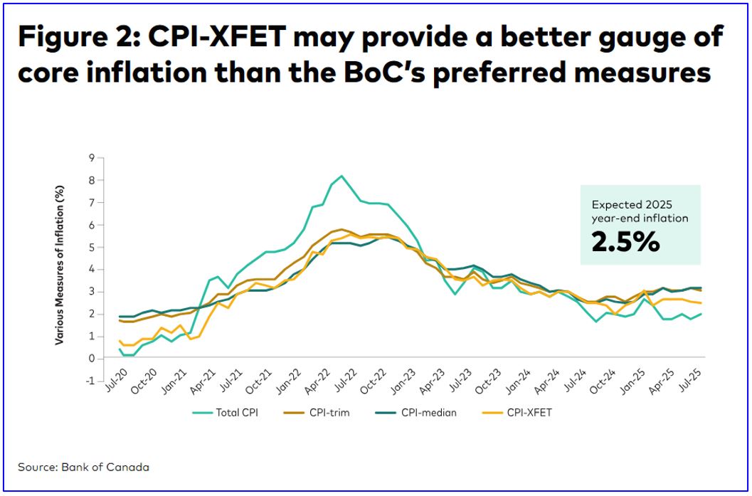 As illustrated in Figure 2, CPI-XFET, which excludes the impact of food, energy, and changes in indirect taxes, has recently tracked between the core and headline inflation measures. Over the past seven years, CPI-XFET has proven to be the most reliable leading indicator of headline inflation, offering a clearer signal by filtering out volatile underlying components.