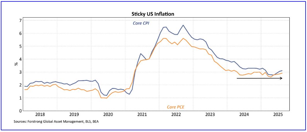 The second major risk is an acceleration in inflation. Historically, central bank rate hiking cycles to combat rising prices are the prime culprit behind recessions – higher bond yields can turn a healthy economy into a stumbling one fast. Yet the recent rallies in global government bonds, combined with market bets that the Fed will cut rates from today’s 4.25% to 3% by December 2026, show markets now believe inflation is yesterday’s problem. Reality check? U.S. inflation has stubbornly hovered around 3% for nearly two years, with little sign of a meaningful downtrend.