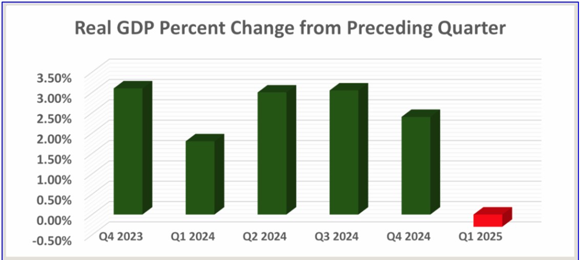The hard economic data provides additional support to that thesis. There is clear evidence that the U.S. economy is declining. U.S. GDP decreased at 0.3% in the first quarter (January through the end of March), according to the advance estimate released by the U.S. Bureau of Economic Analysis. In the fourth quarter of 2024, real U.S. GDP increased 2.4%.