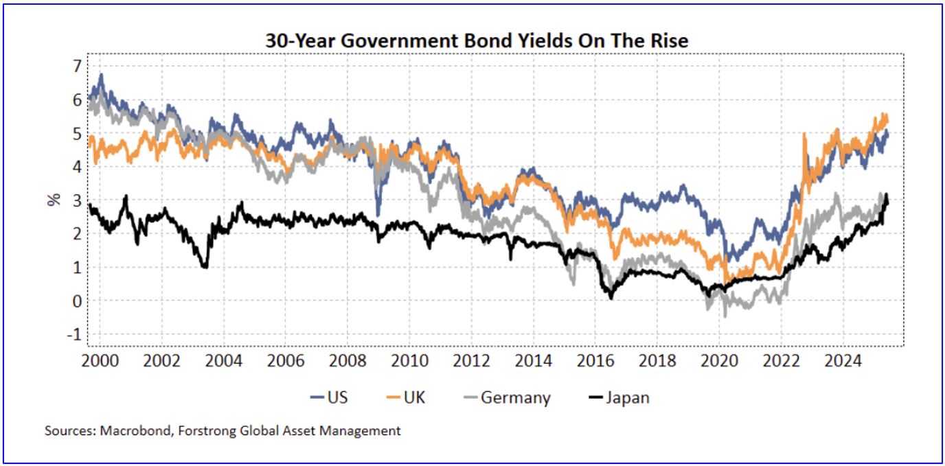What’s happening? Bond markets are complex ecosystems – shaped by countless actors including central banks, pensions, insurance companies, sovereign wealth funds, and millions of individual participants. But broadly speaking, nominal growth and bond yields tend to move together over long periods. Higher inflation and stronger growth usually mean higher rates.