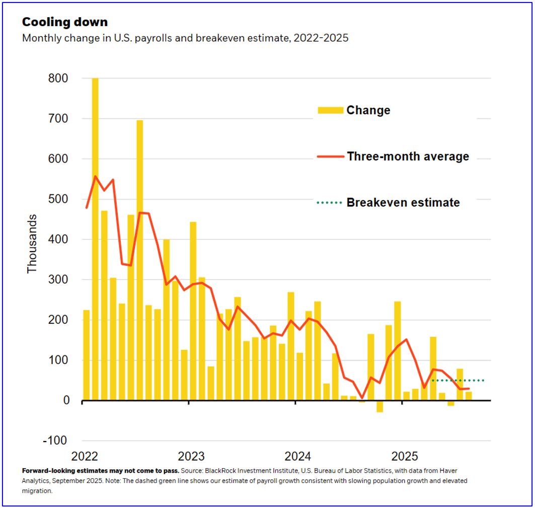 For the Fed, this combination of weaker payroll gains and slowing inflation from softer labor demand has mitigated the tension between its inflation and employment mandates, justified the September rate cut, and allowed it to signal scope for more cuts.