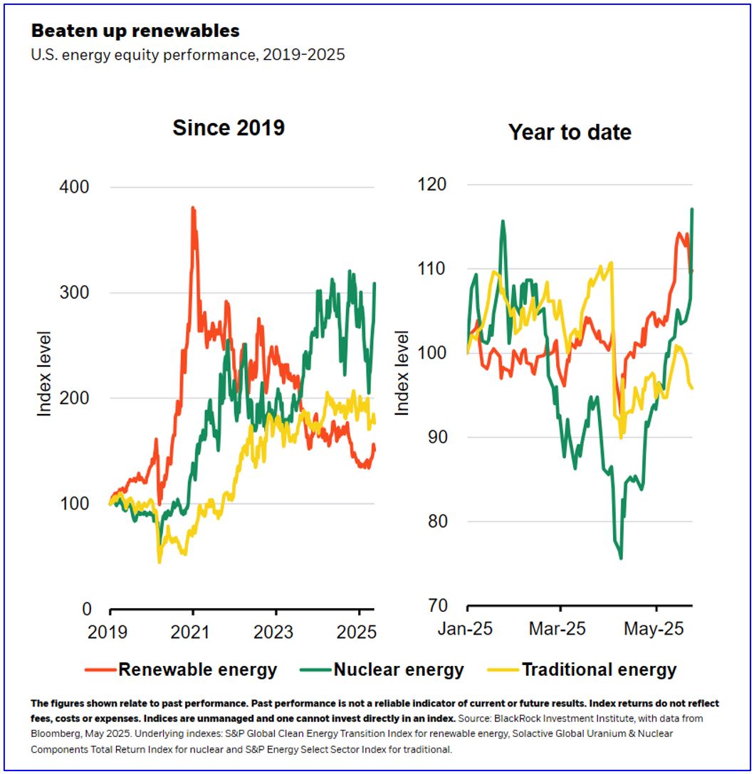 Growing power demand has policymakers rethinking the tradeoffs between energy sustainability, affordability, and security. We see opportunities in nuclear, U.S. natural gas and renewables (especially solar and batteries).