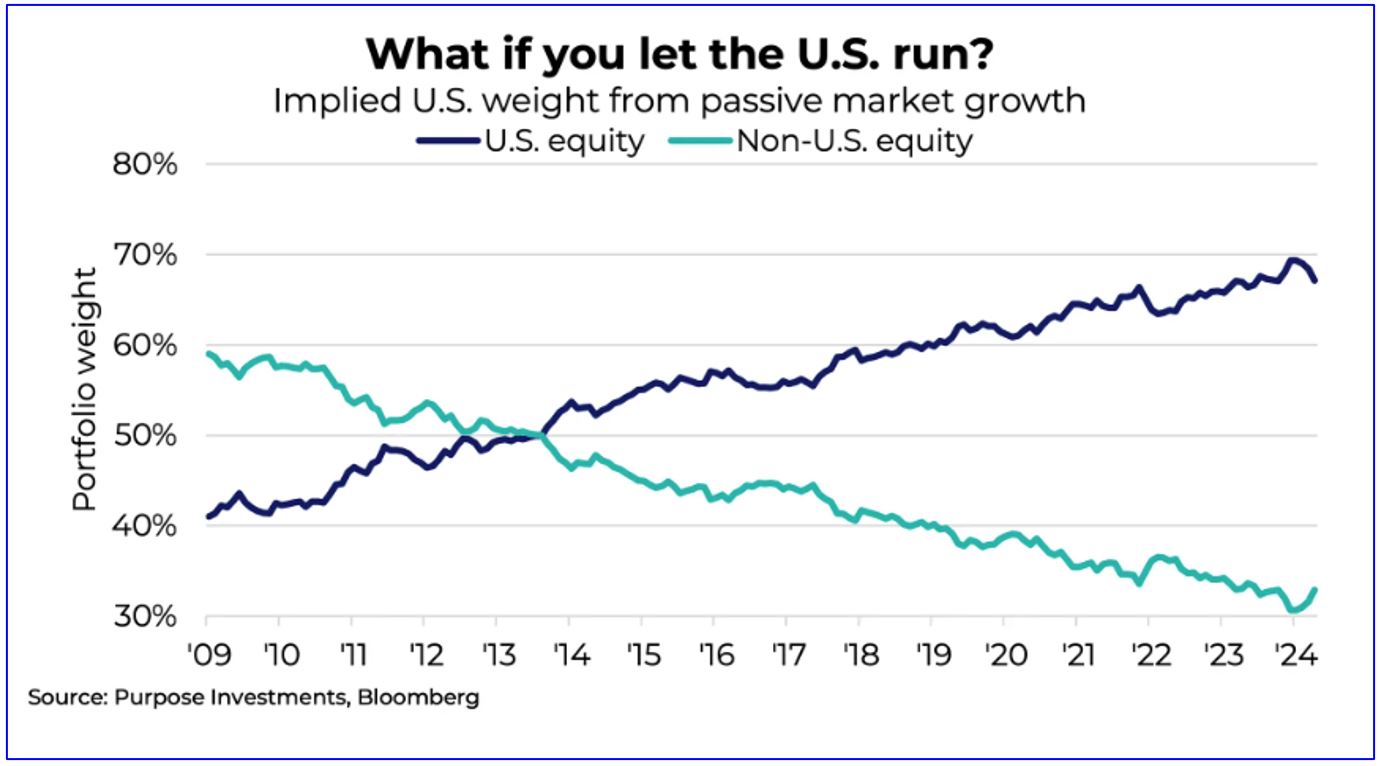 But now we have to ask: Is this the right portfolio positioning for what lies ahead? Just because global market caps favour the U.S. more these days doesn’t mean they’re right. In fact, focusing too much on global market caps is literally backward-looking.