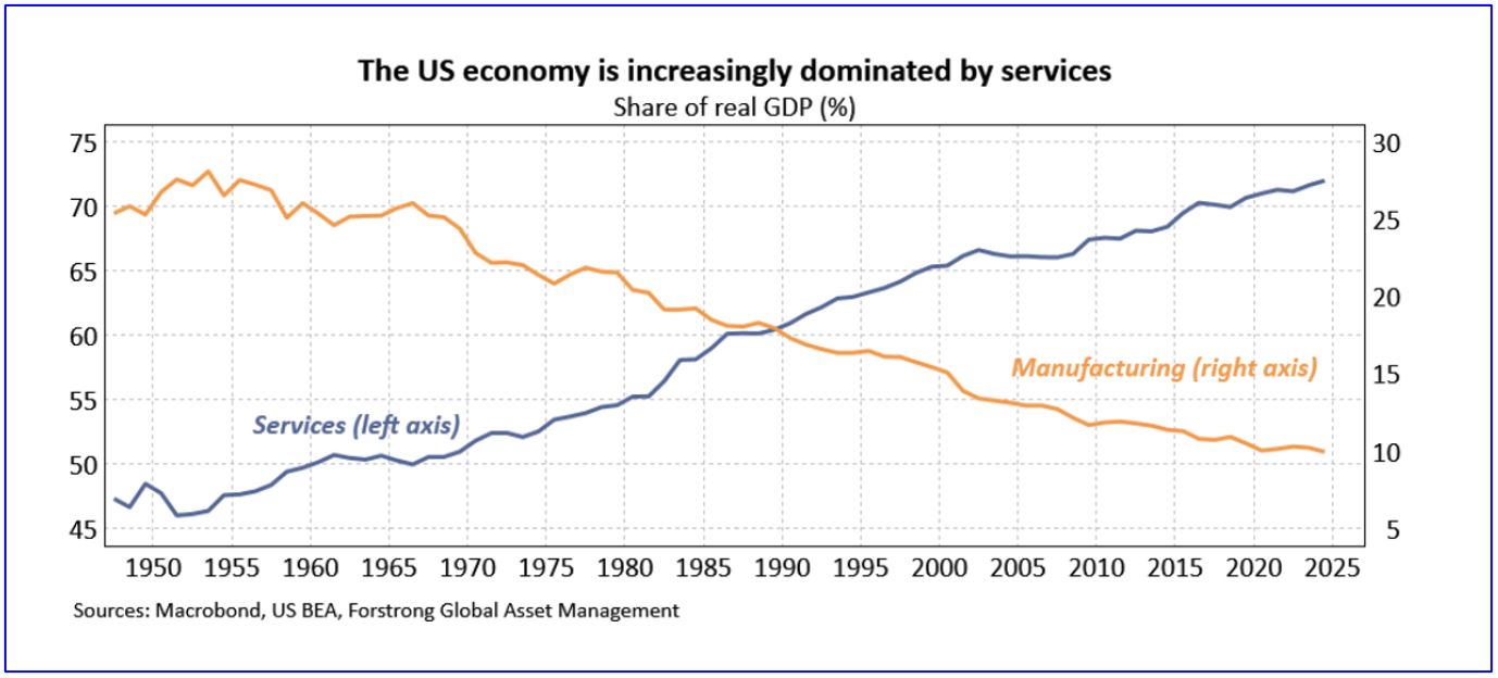 Putting it all together, the U.S.’s massive AI spend continues to distort aggregate growth figures, but warning signs for the underlying economy, while concerning, should not be exaggerated. Predicting more steady policymaking from the current U.S. administration may be wishful thinking, but the destabilizing impact of on-and-off tariffs should recede as deals with major trading partners are reached. That would go a long way towards restoring hiring and spending intentions amongst U.S. businesses. While we continue to see better growth opportunities in other markets (see our recent Ask Forstrong: Postcard From Europe piece), continued resilience in the U.S. would be supportive of global growth and investor sentiment alike.