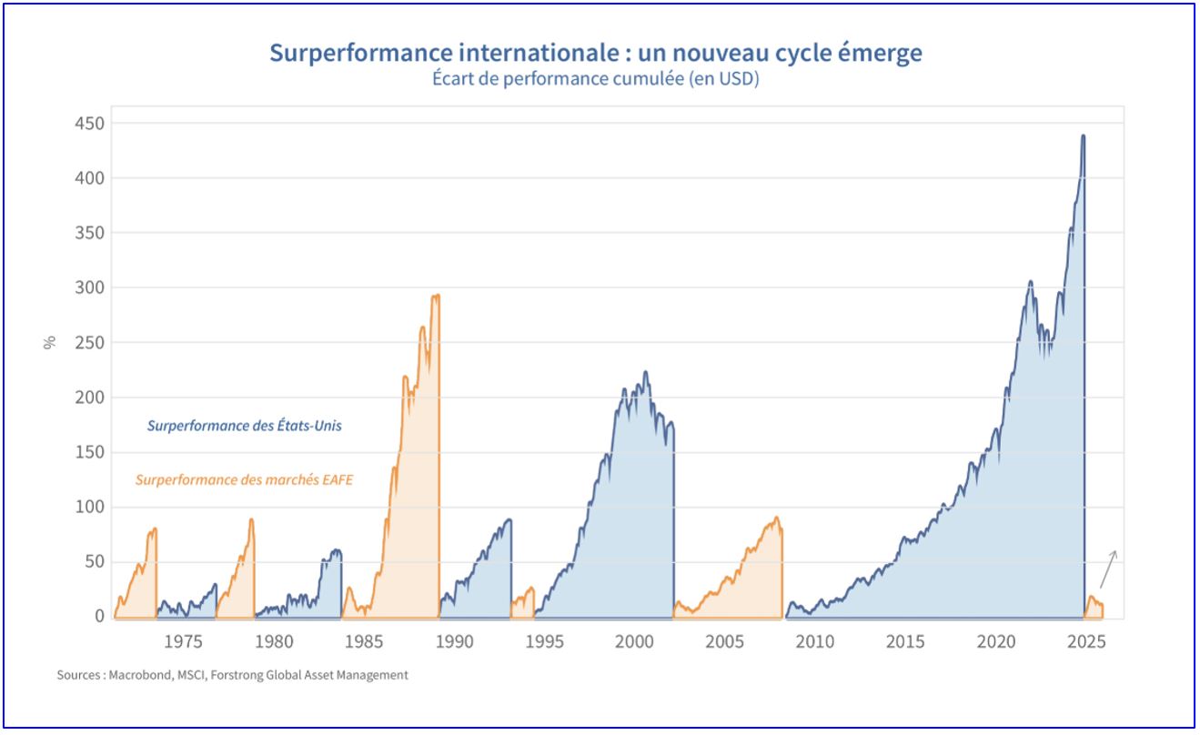 Les investisseurs restés ancrés dans les gagnants de la dernière décennie risquent de passer à côté de l’un des tournants les plus importants des années 2020. La diversification mondiale redevient un moteur de rendement, et non plus seulement un outil de gestion du risque.