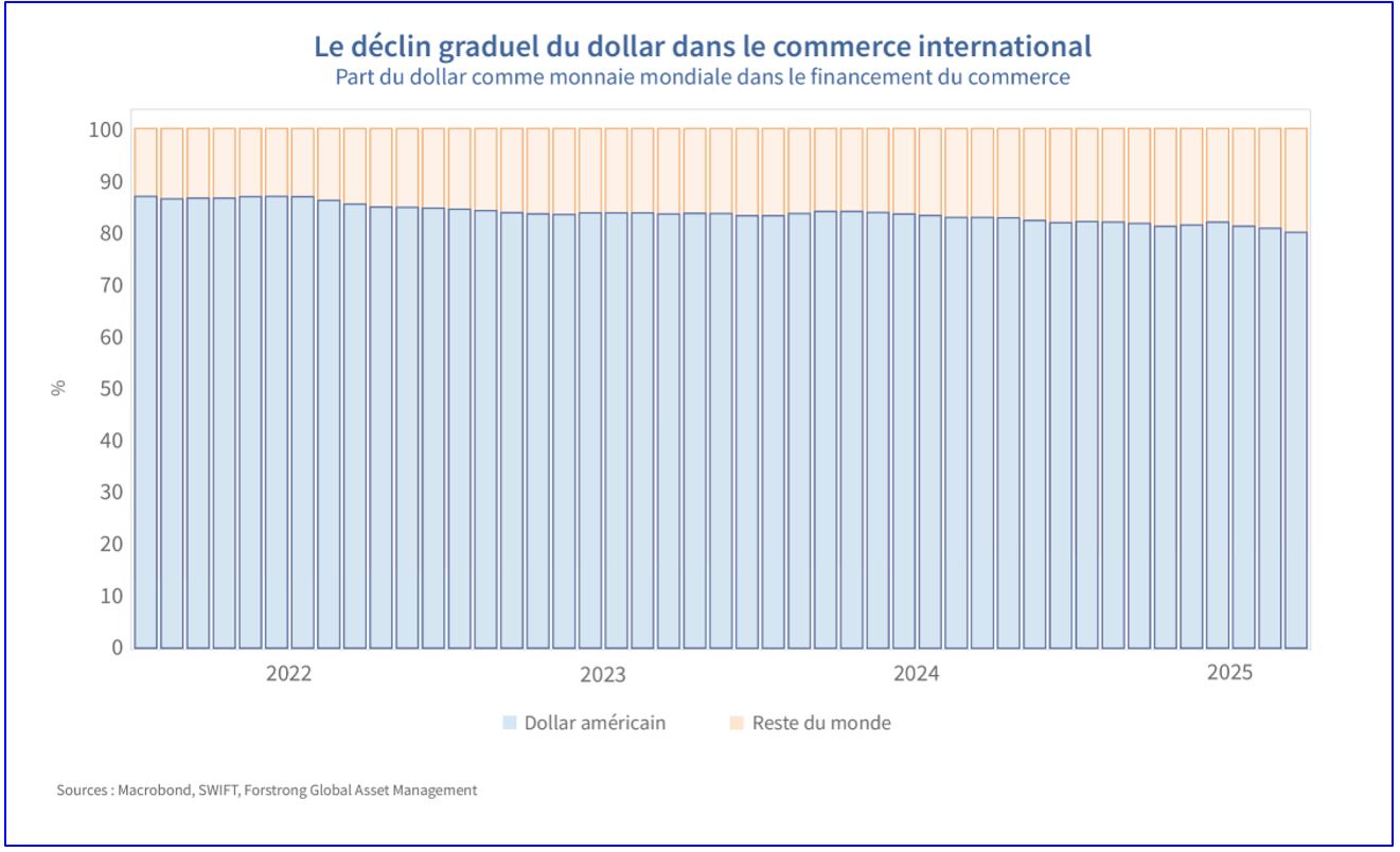 En réaction, de nombreux pays en Asie, au Moyen-Orient et en Amérique latine cherchent des alternatives. Les règlements commerciaux bilatéraux progressent, des blocs monétaires régionaux émergent et la diversification des réserves s’accélère. Le dollar américain demeure dominant, mais sa suprématie est de plus en plus contestée.